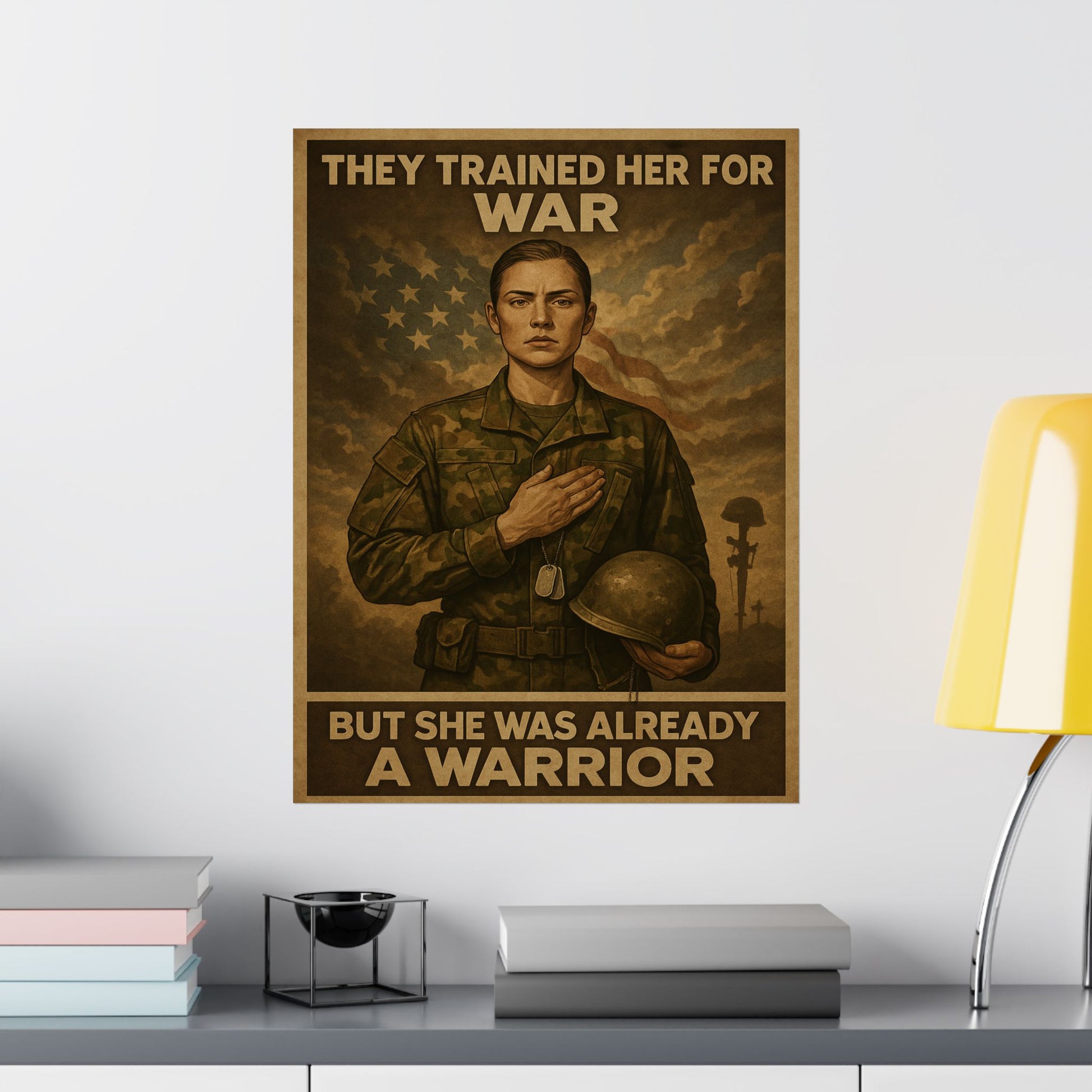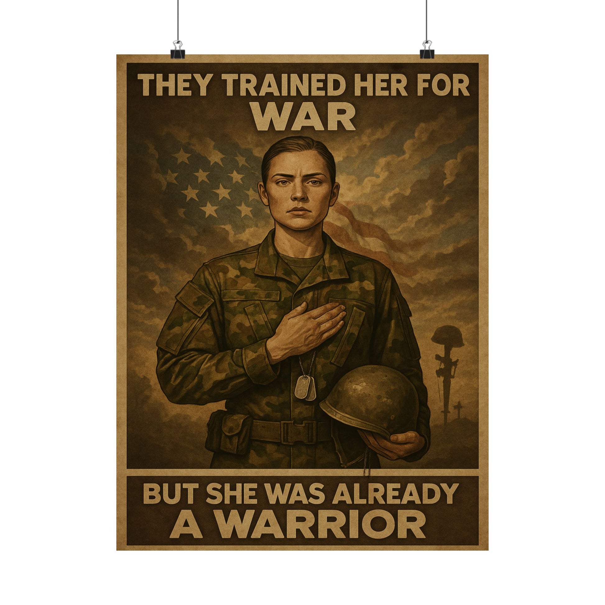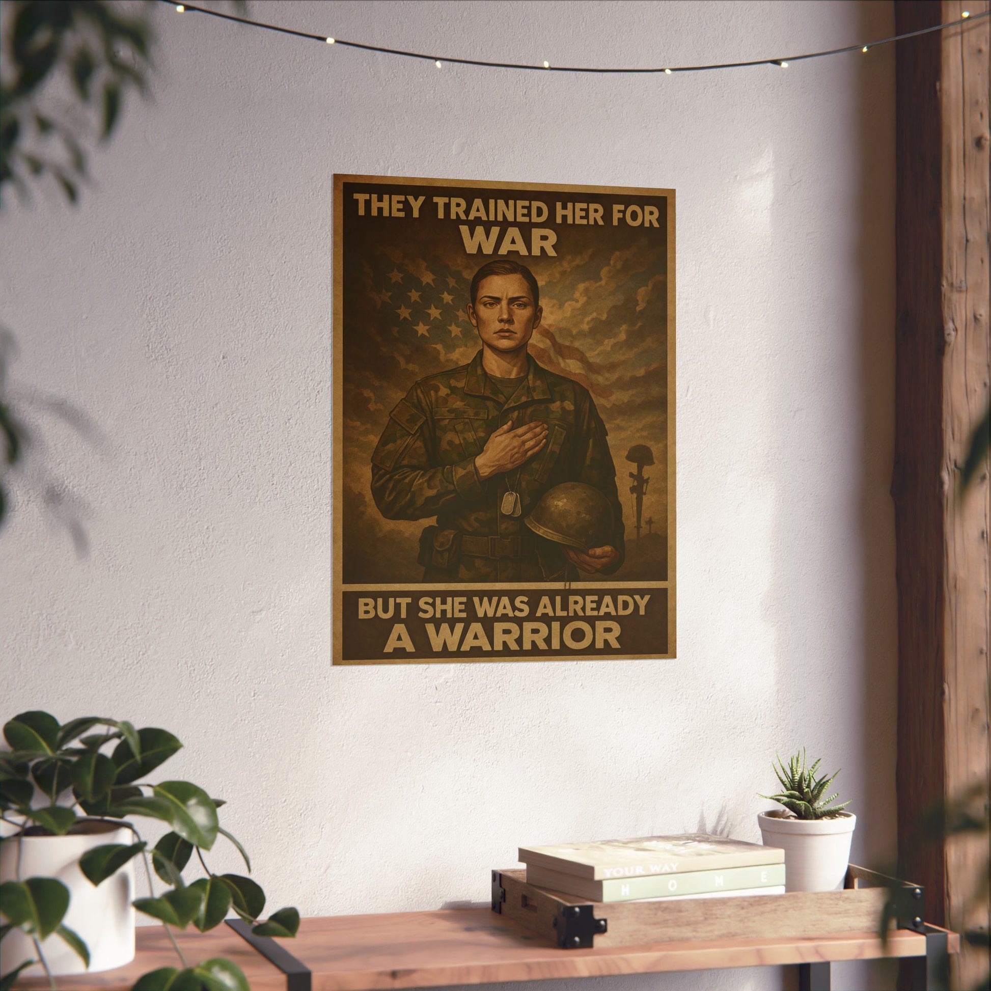 “A WARRIOR” – Vertical Matte Poster – Military Woman Tribute