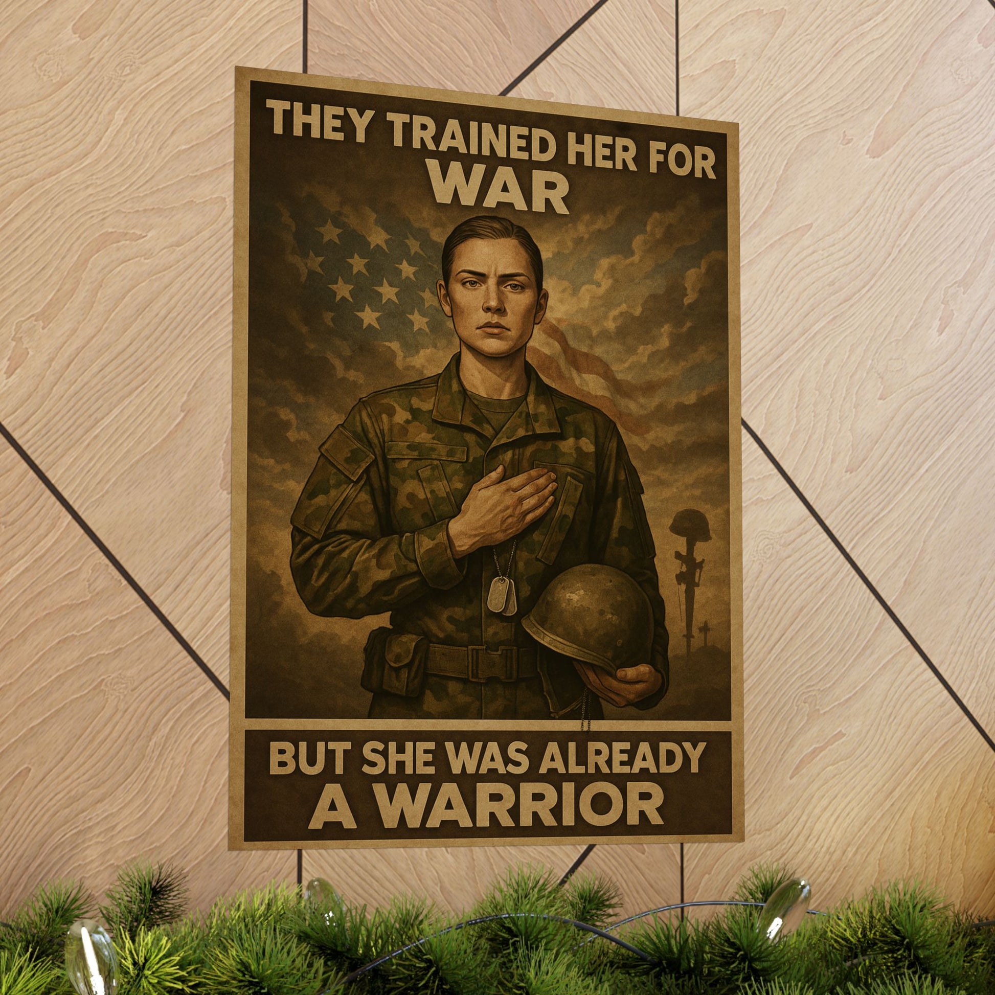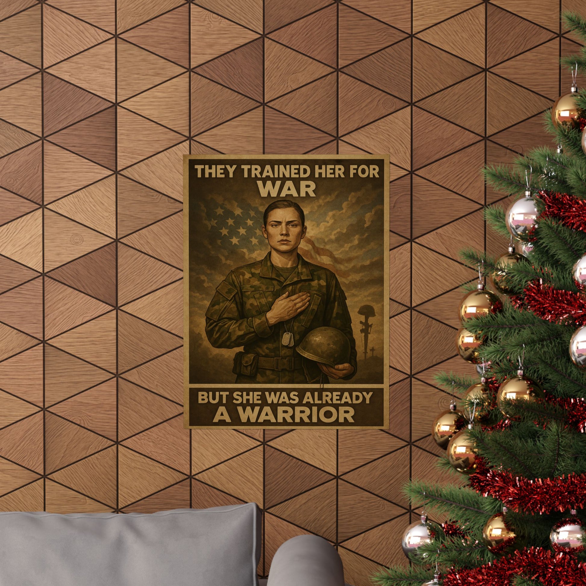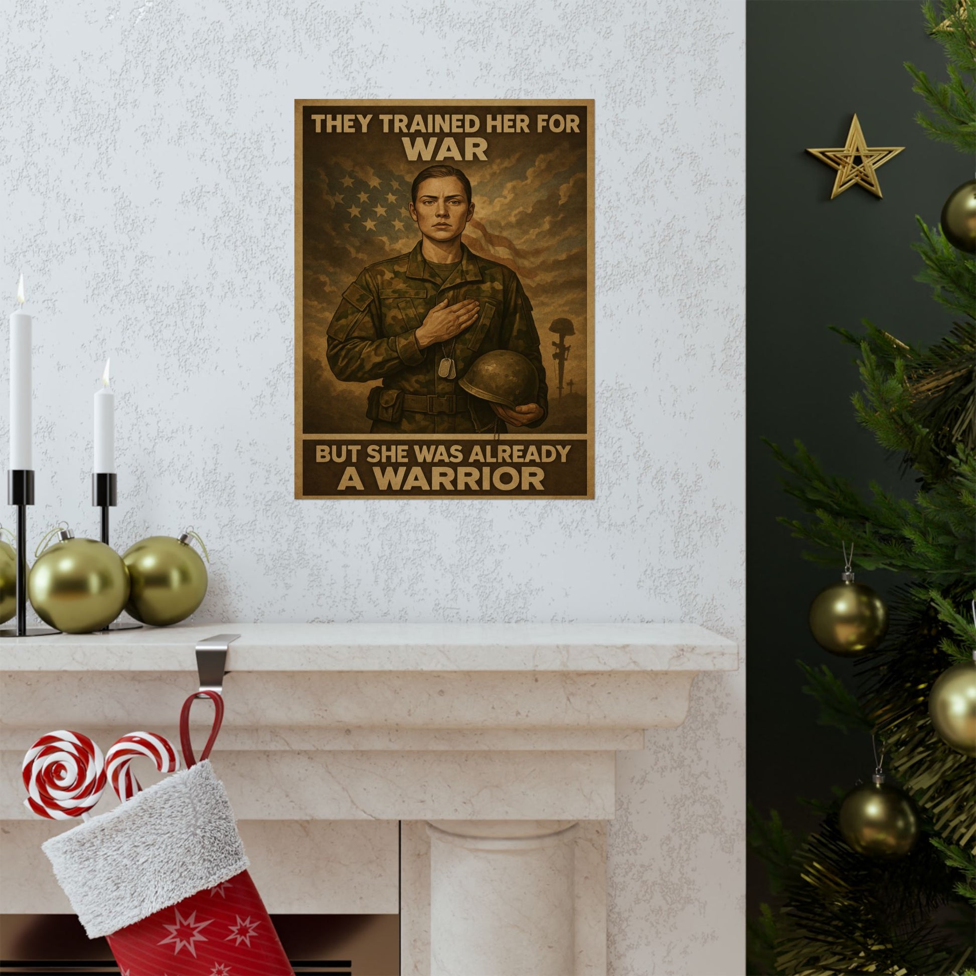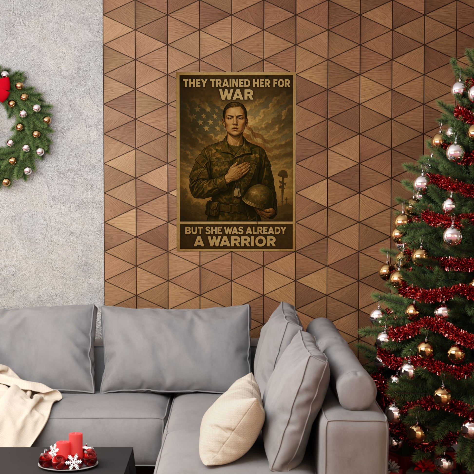 “A WARRIOR” – Vertical Matte Poster – Military Woman Tribute