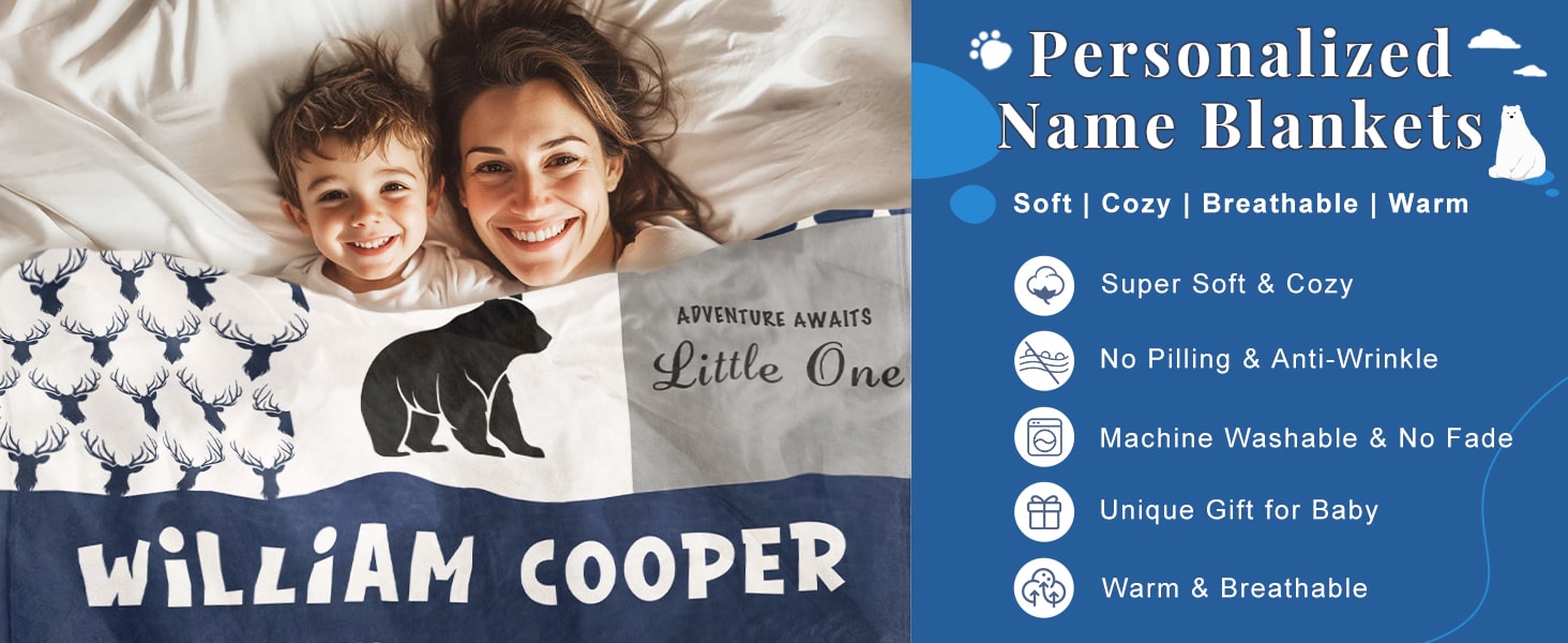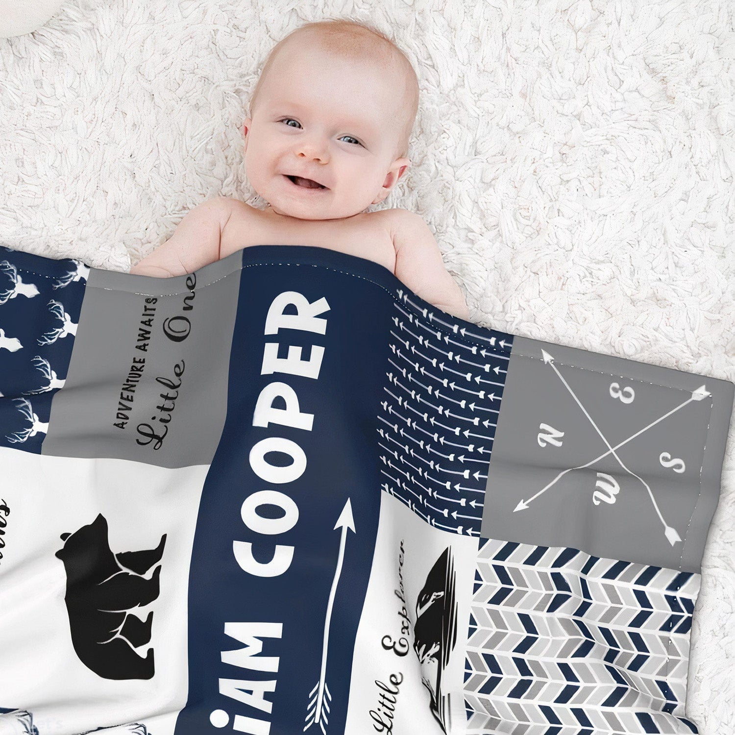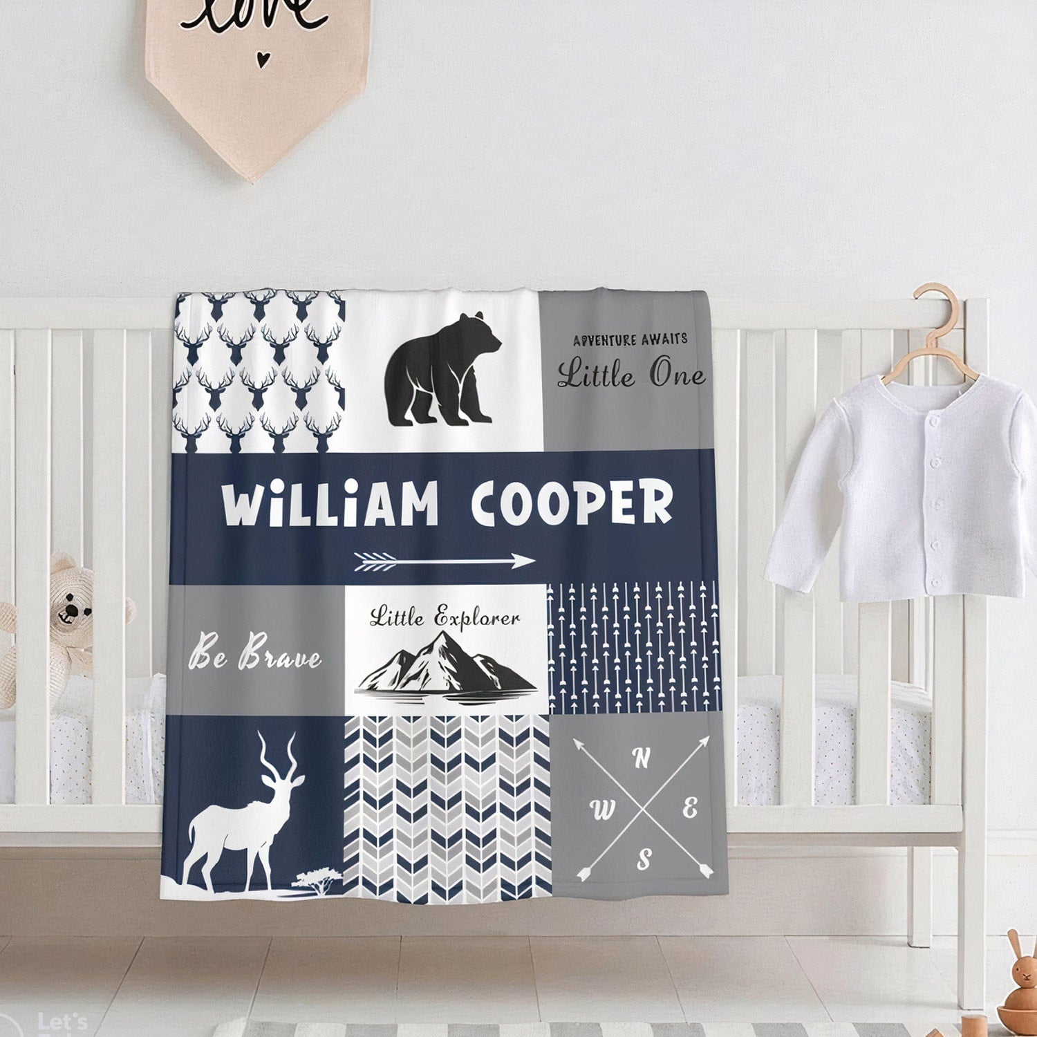 🦌 Personalized Woodland Name Blanket – Cozy & Custom!