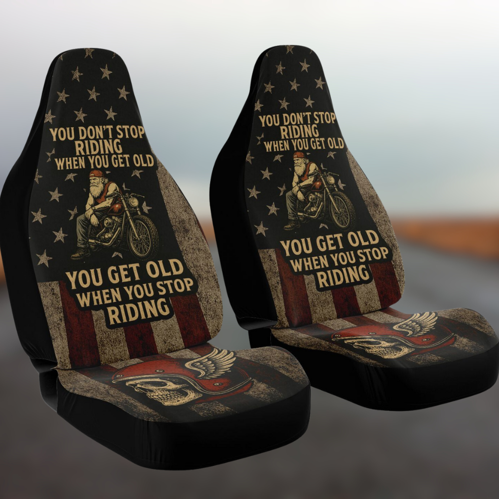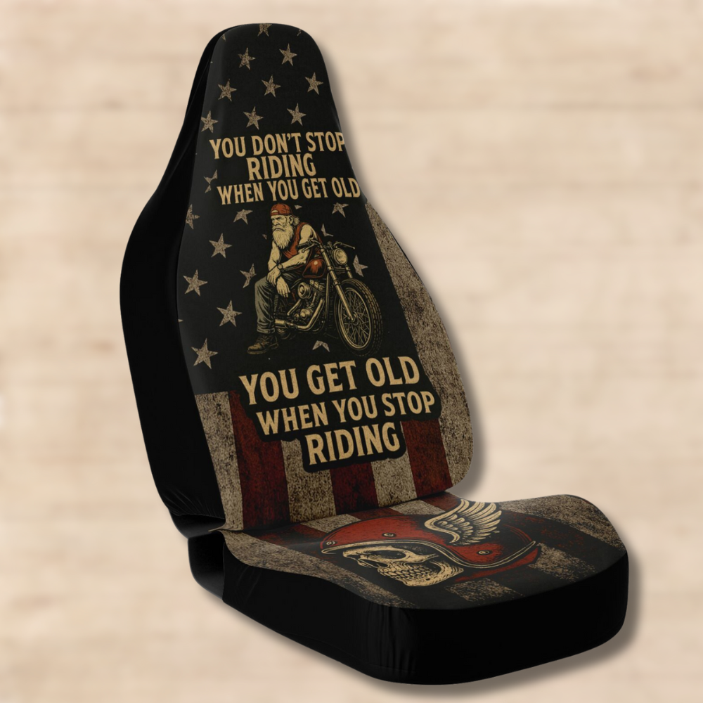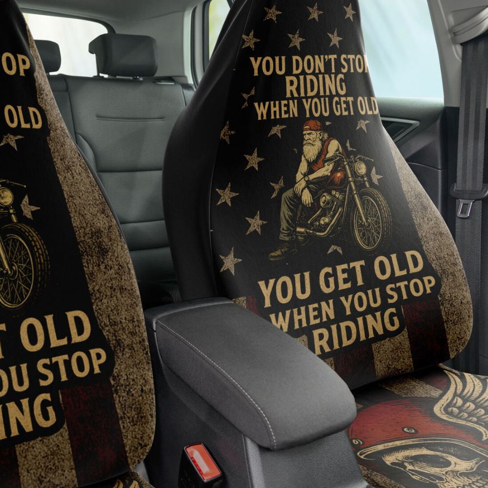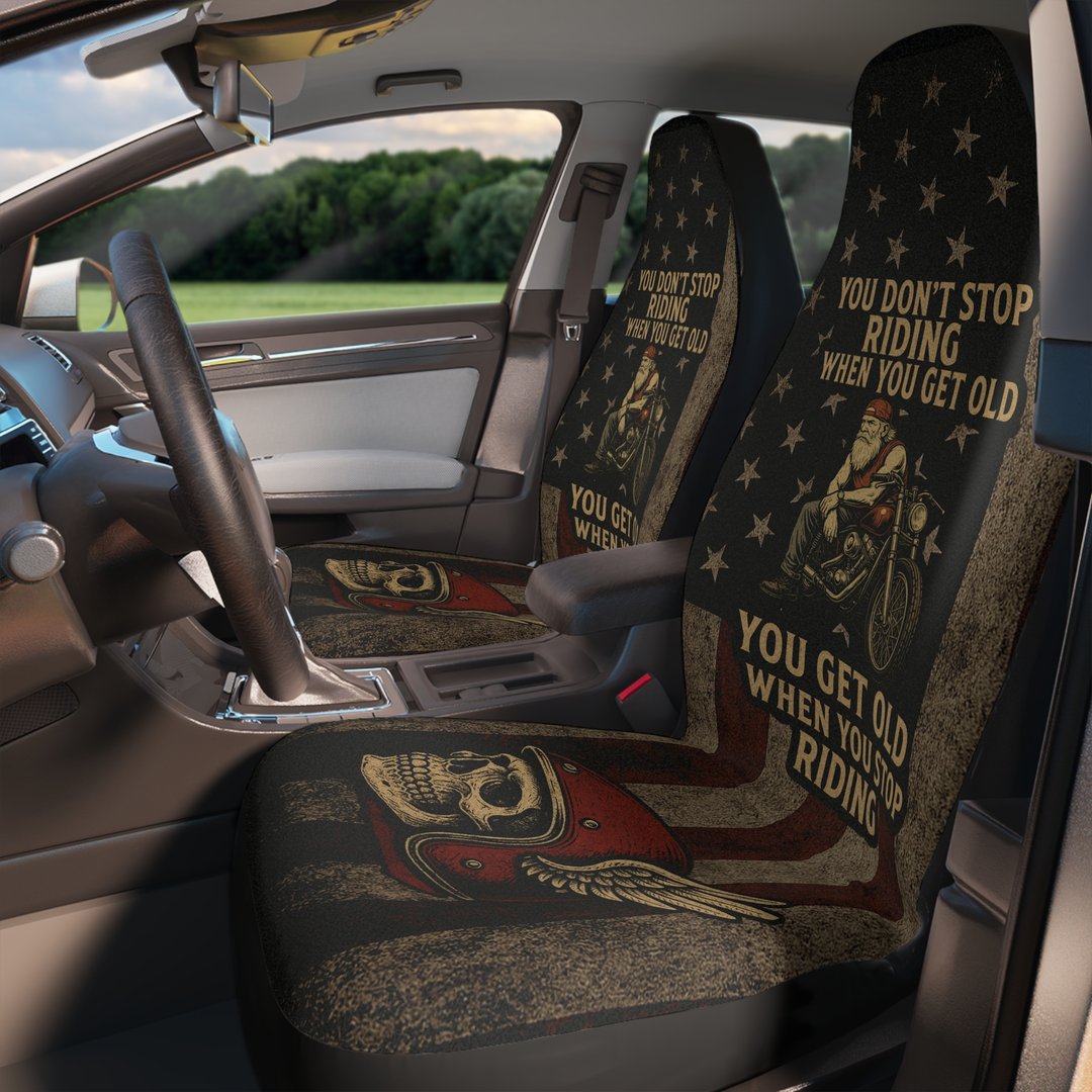 You Don’t Stop Riding” – Biker Car Seat Covers (2-Pack)