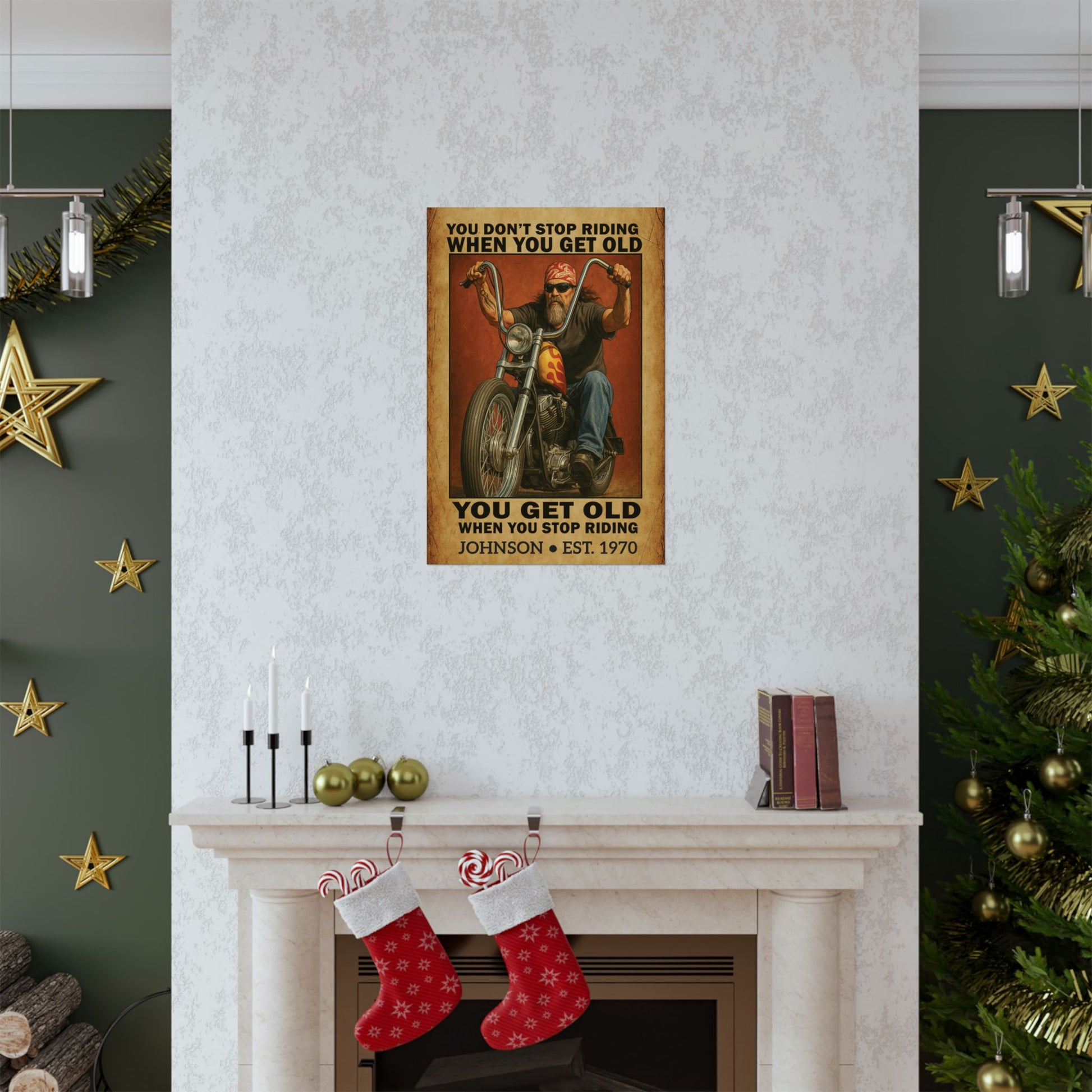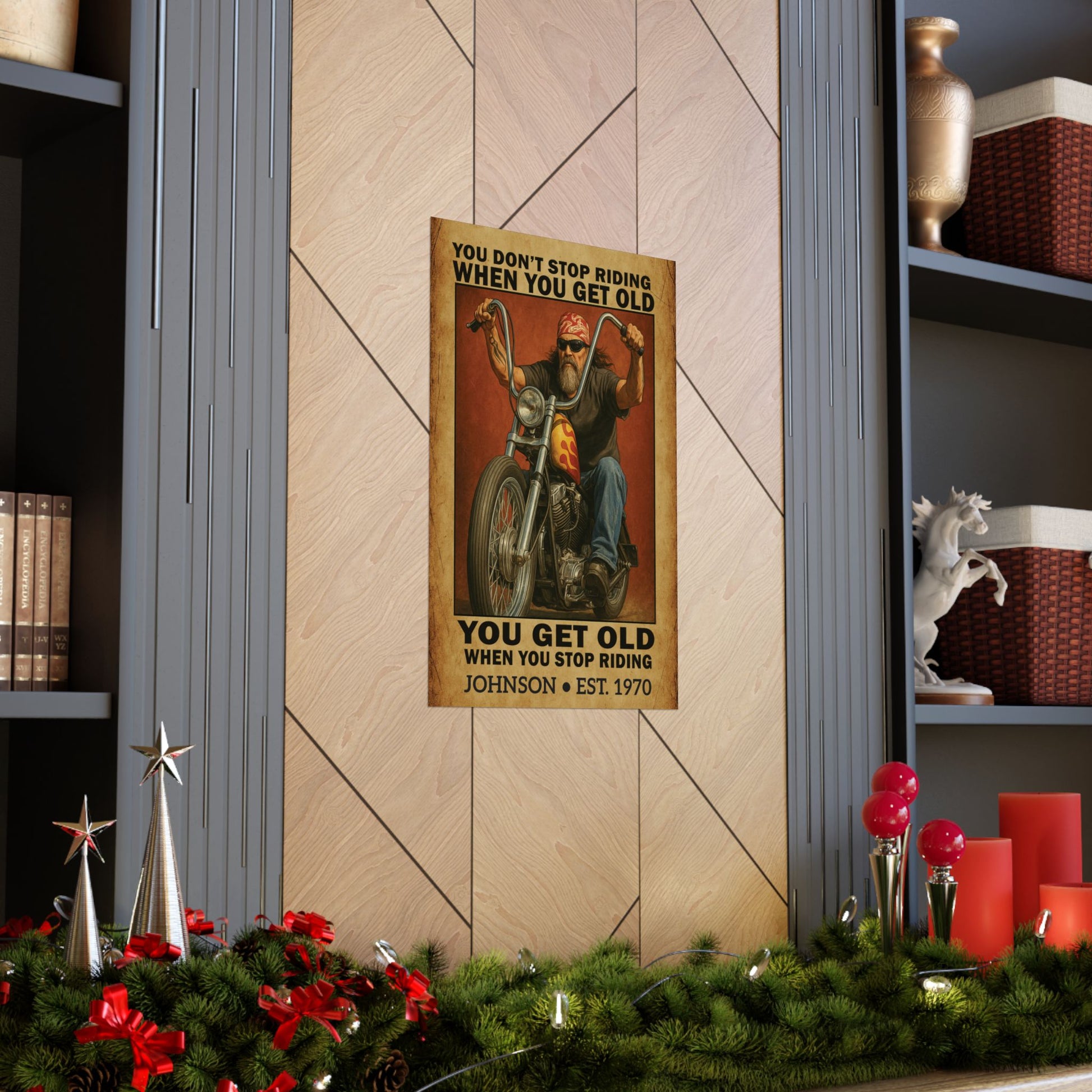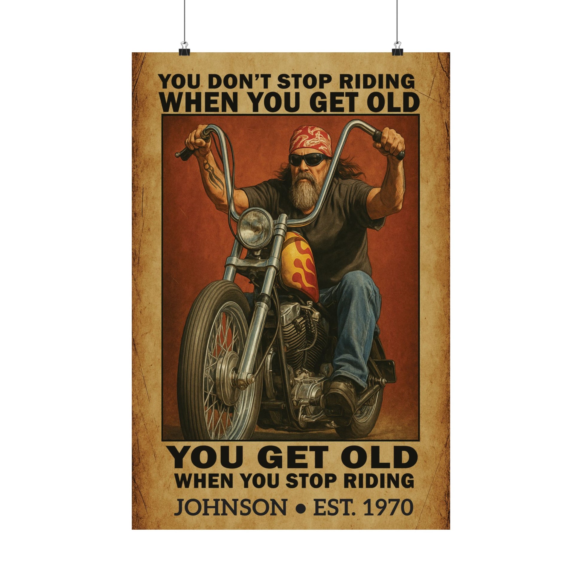 Custom Vintage Biker Poster – "You Don’t Stop Riding" – Personalized Wall Art