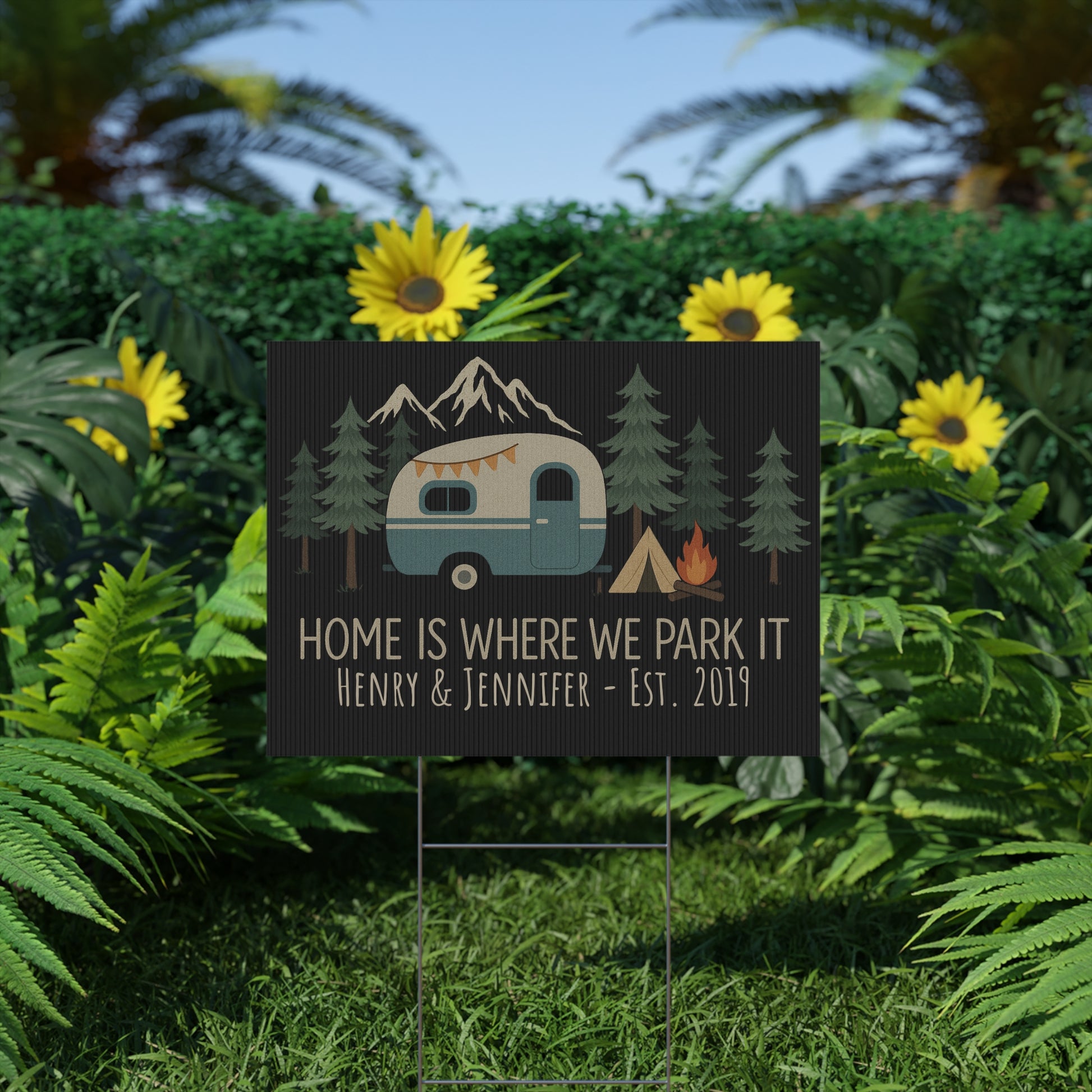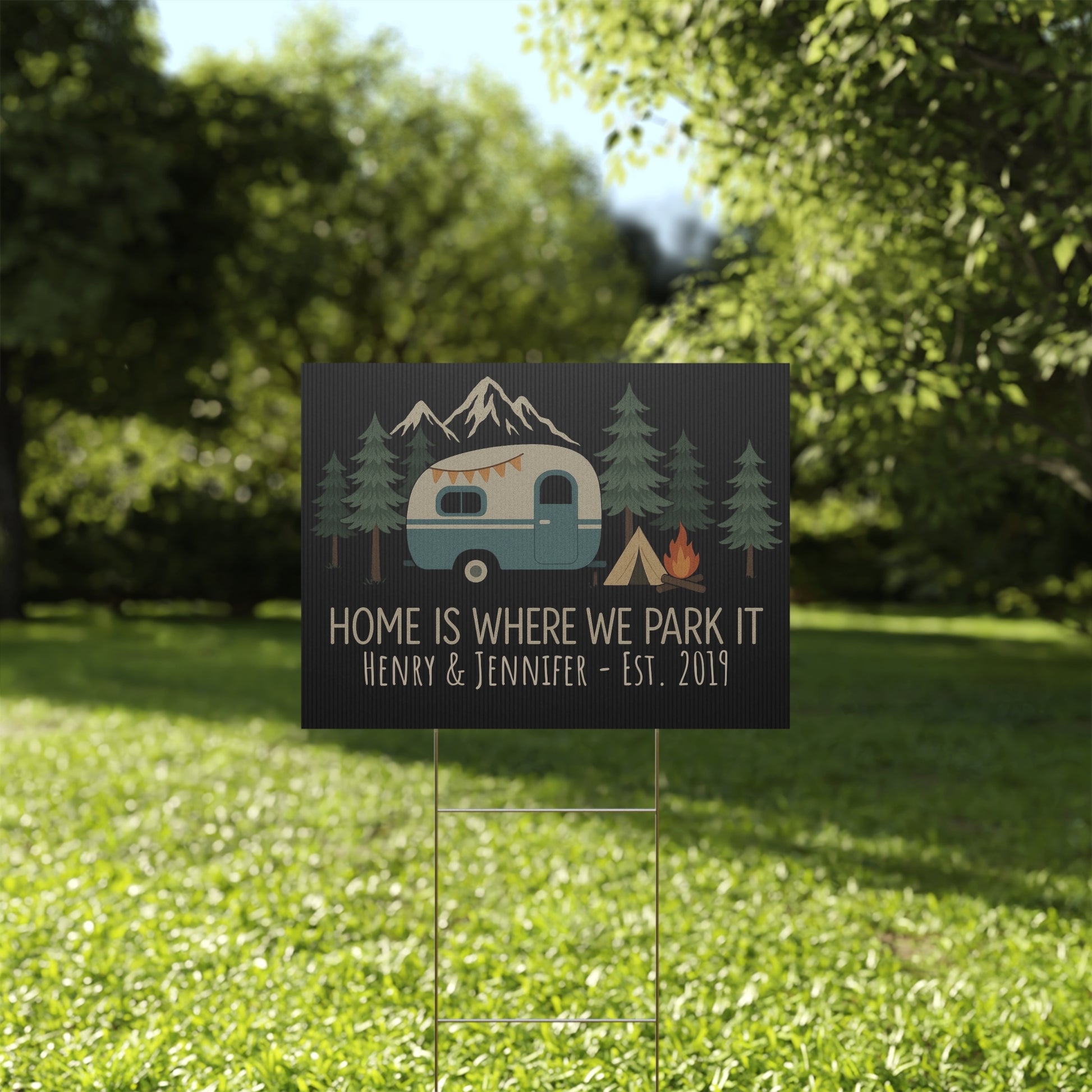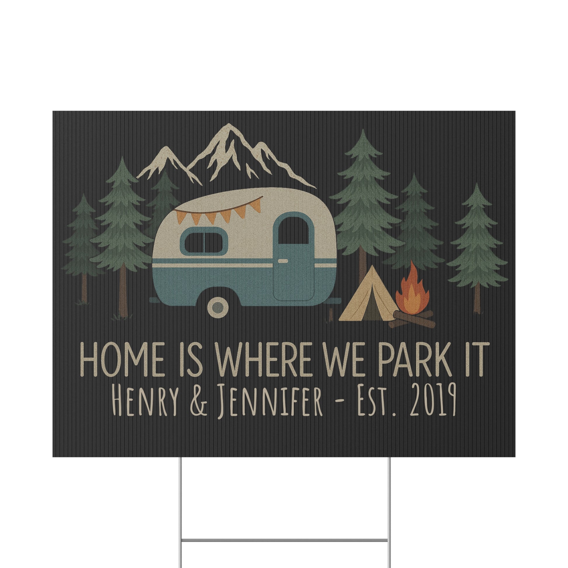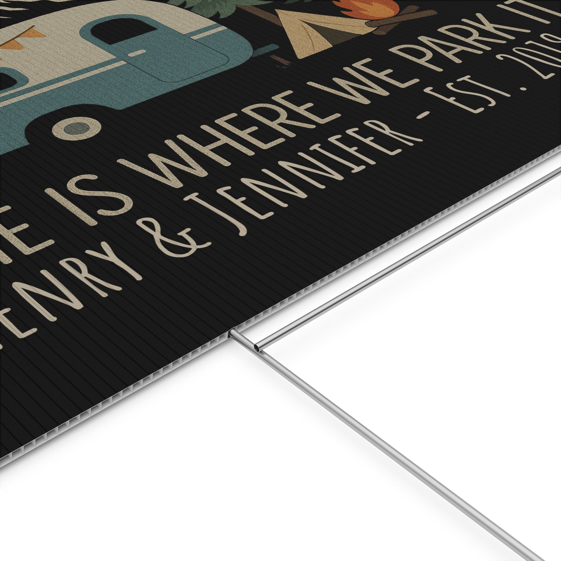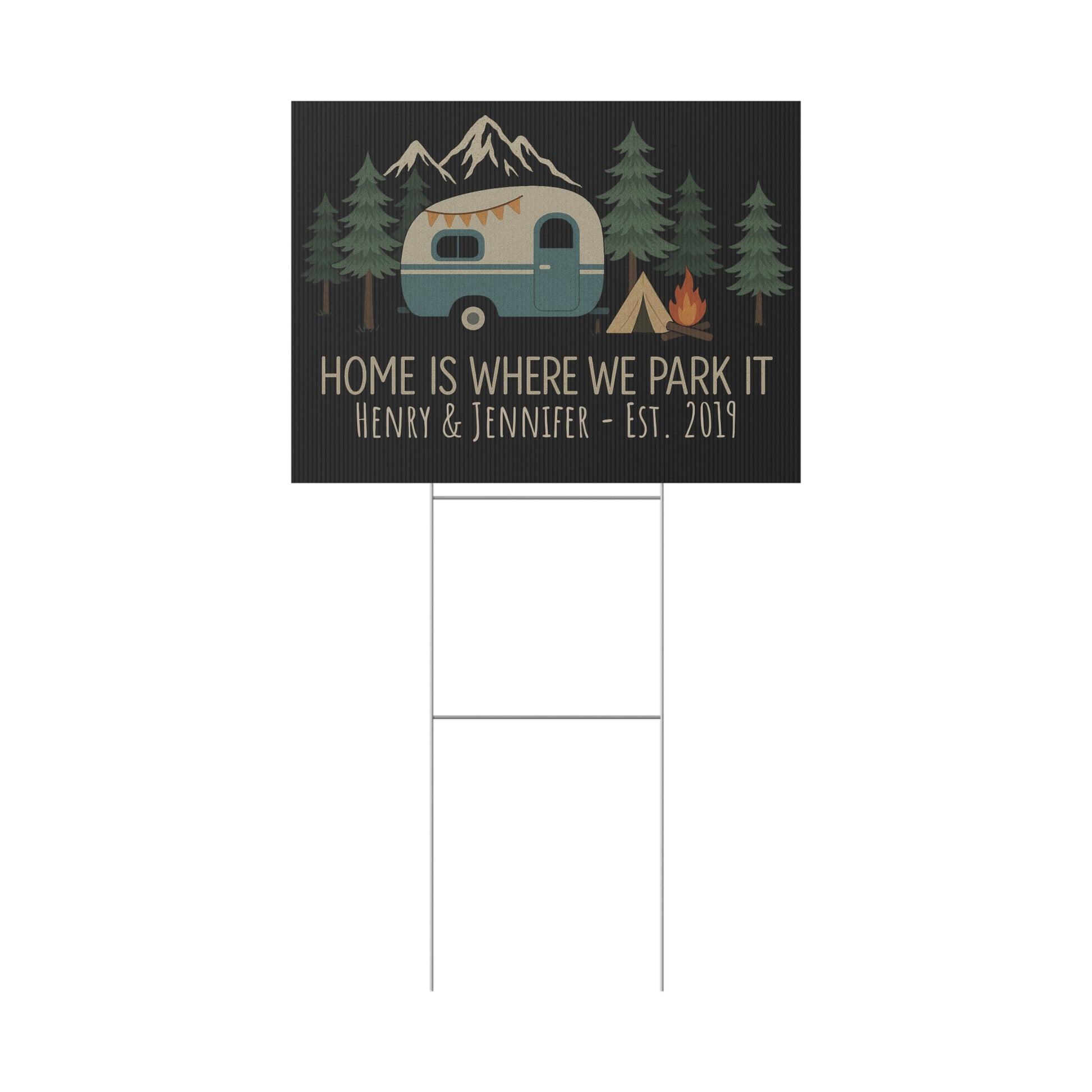 24″ x 18″ Personalized Camping Sign – “Home Is Where We Park It”
