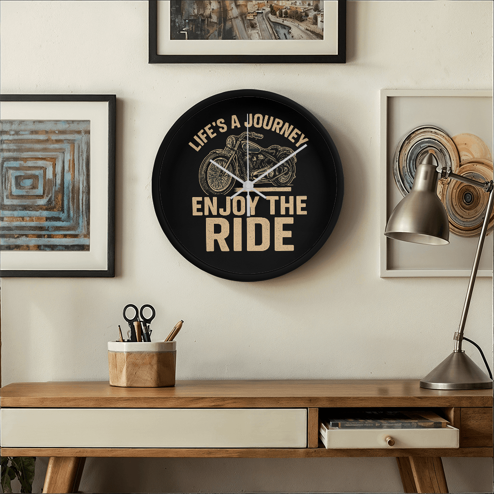 Life's a Journey, Enjoy the Ride" – 10" Wood Frame Wall Clock