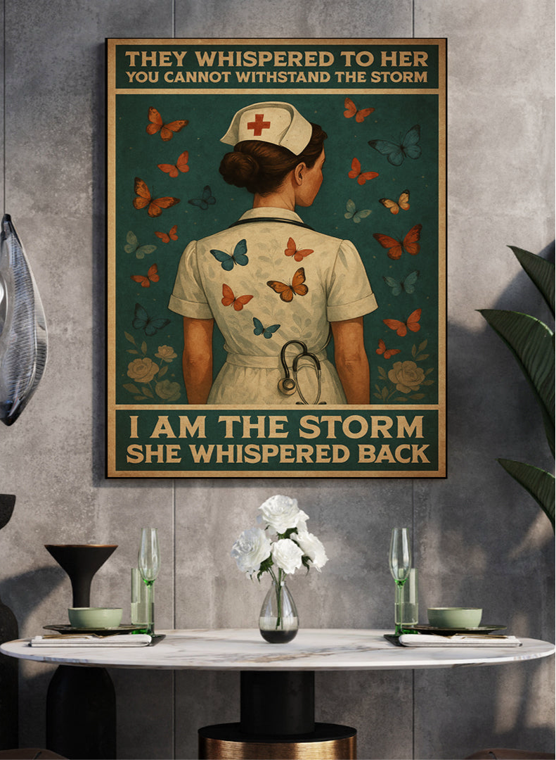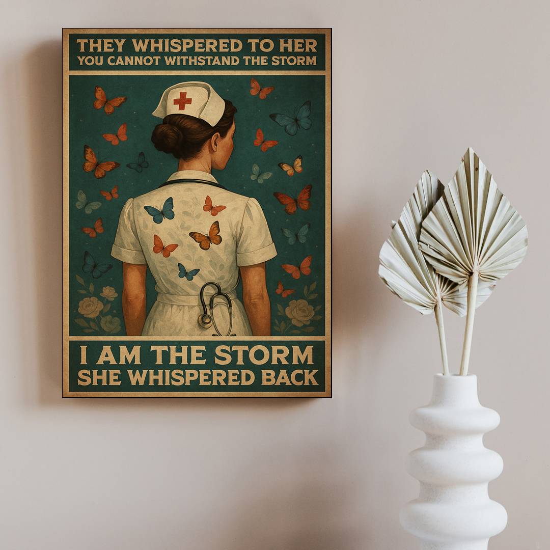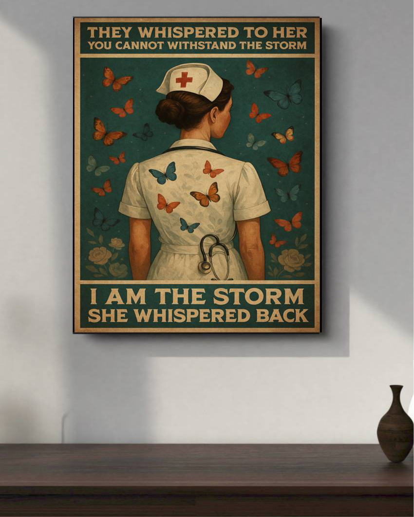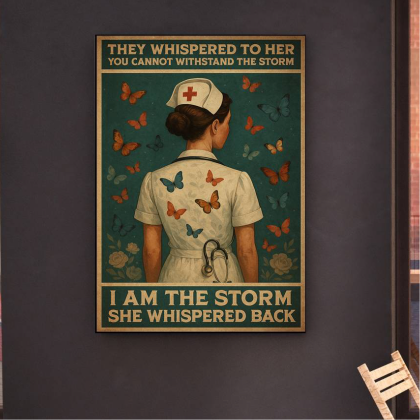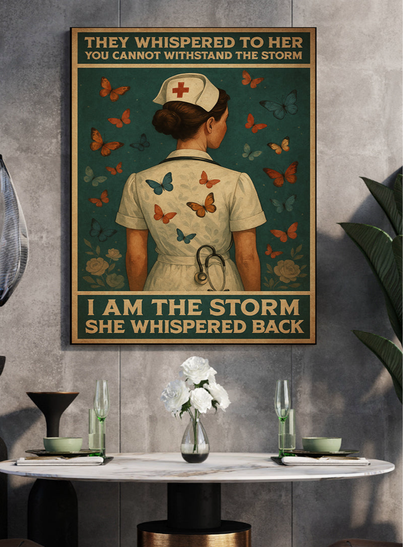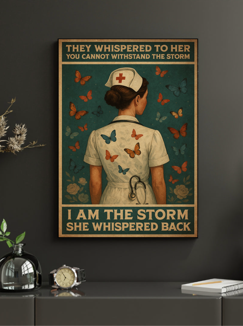 Featuring a stunning vintage-style design of a nurse surrounded by butterflies, paired with the bold quote: