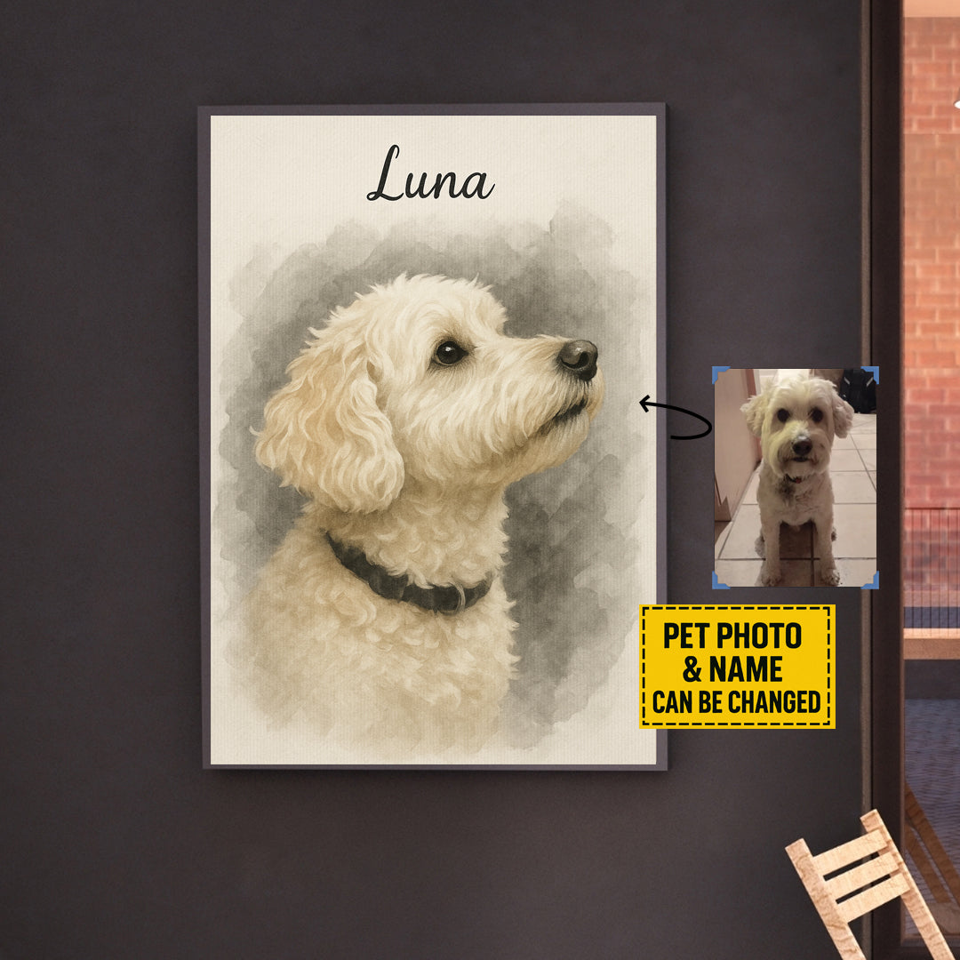 This custom canvas brings your furry best friend to life with a stunning portrait design — personalized with their photo and name. Whether it's your loyal dog, playful cat, or cherished companion, this piece turns memories into meaningful décor.