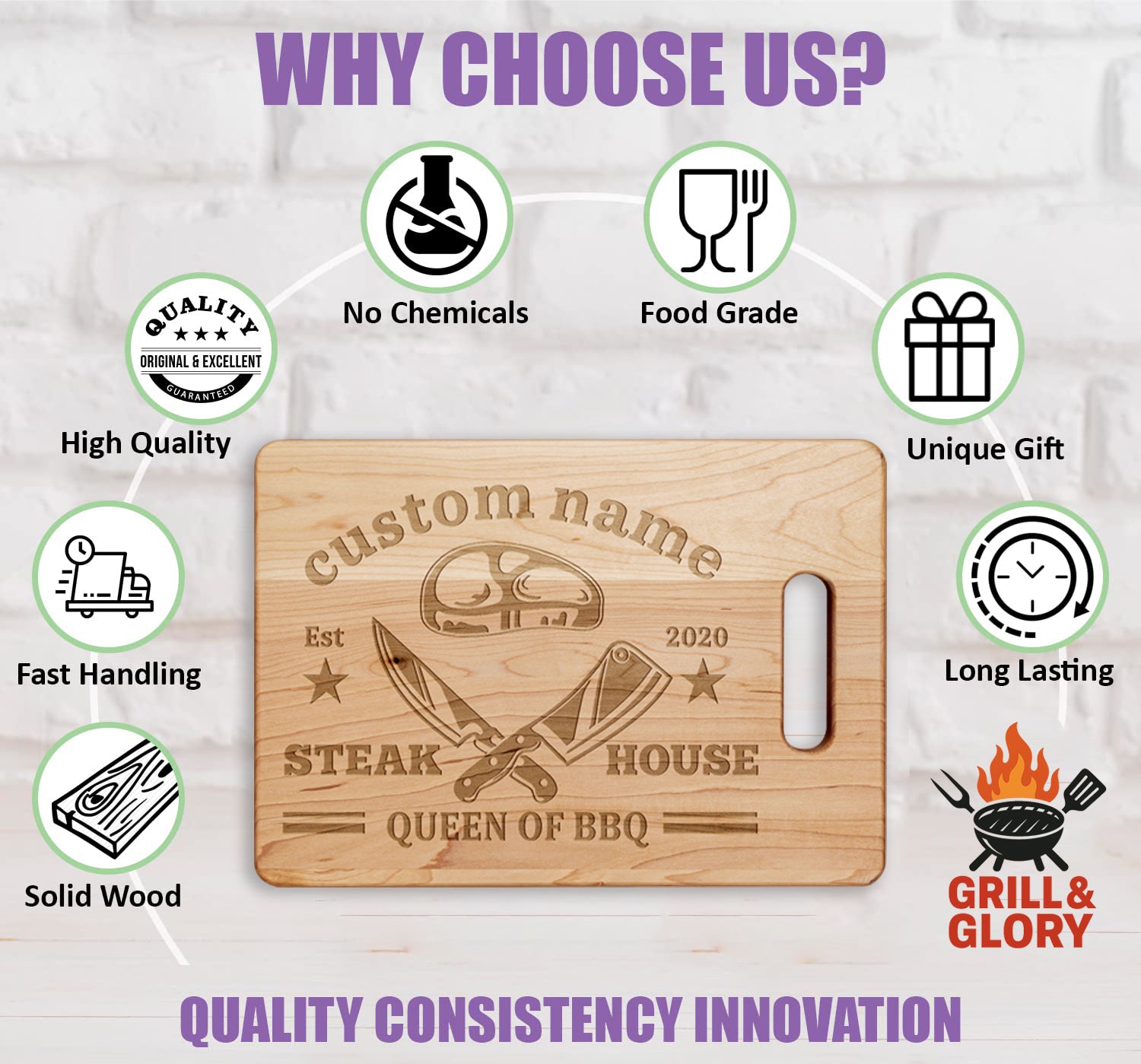 This custom engraved cutting board is made for the queens of the grill โ a stunning showpiece that blends beauty with function. Whether itโs for your own kitchen or as a gift, this board brings pride, fire, and flavor to every space.