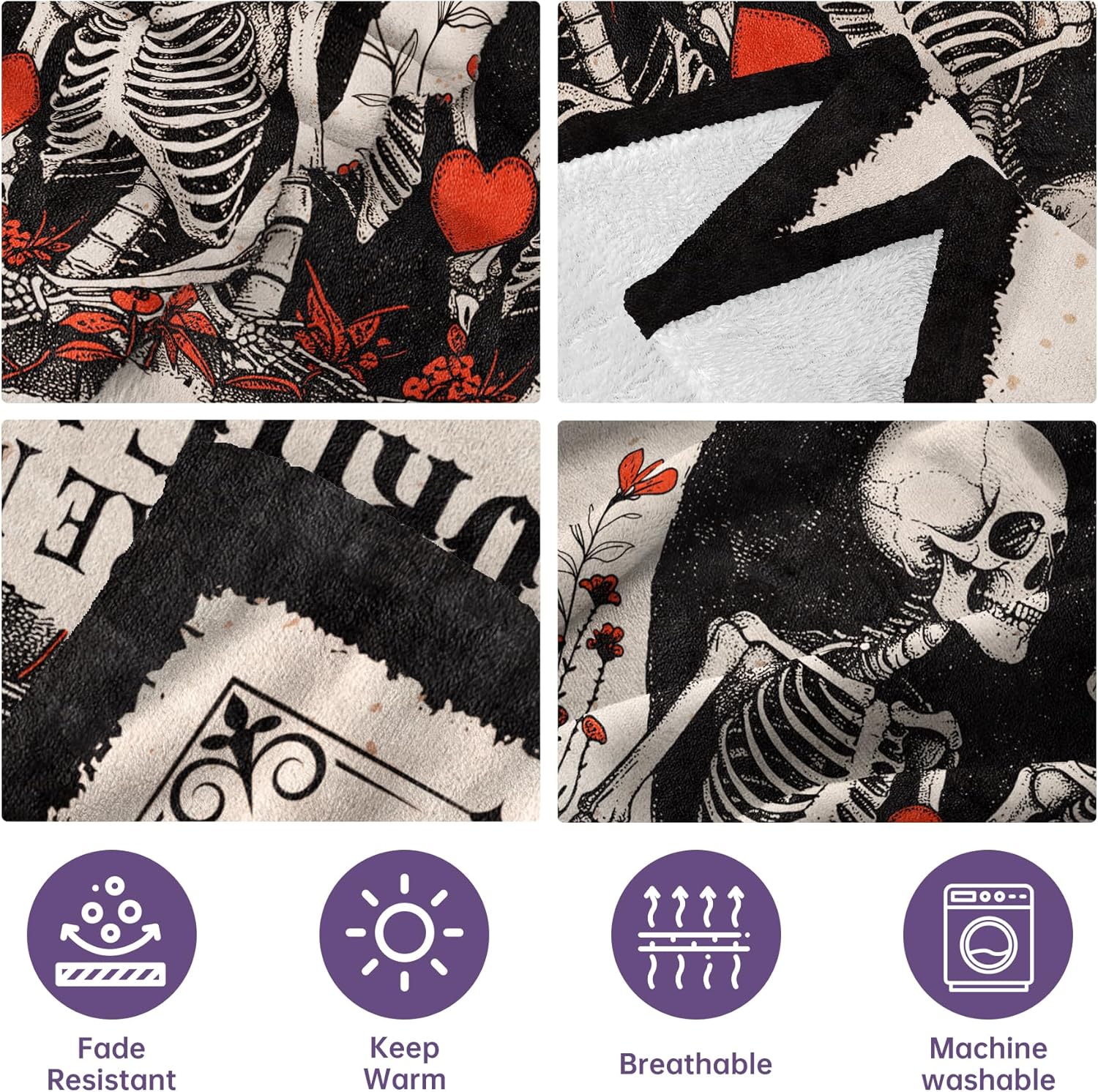 This gothic-romantic blanket is fully personalized with both your names, featuring a hauntingly beautiful skeleton couple surrounded by roses, moon phases, and a quote that says it all: