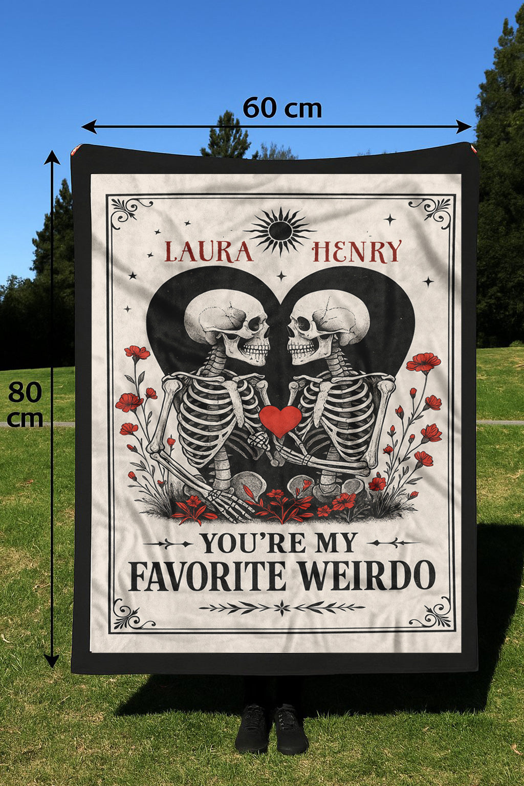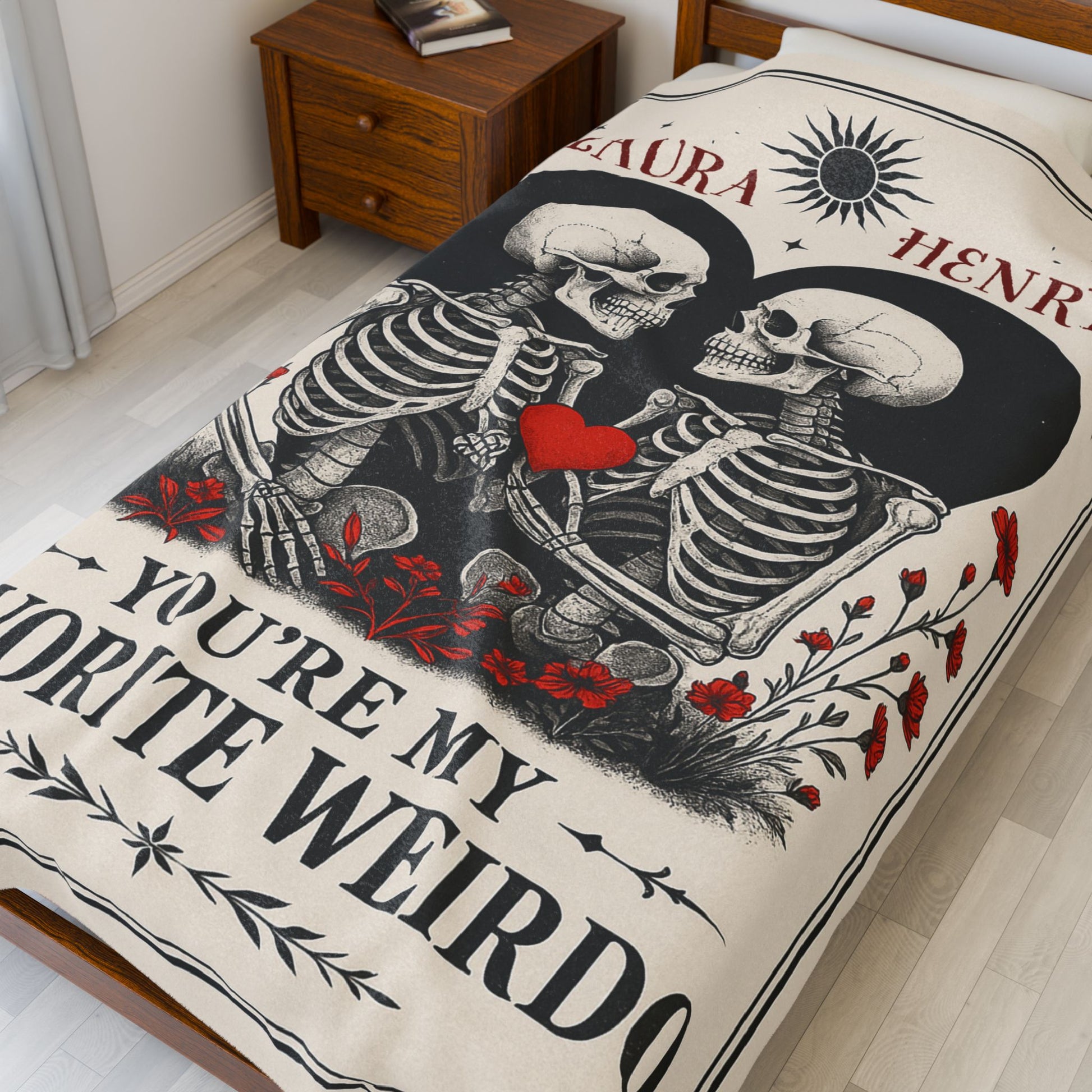 You’re My Favorite Weirdo” – Personalized Gothic Skeleton Couple Blanket