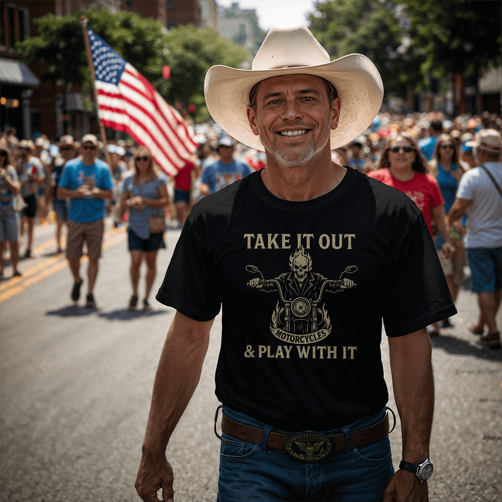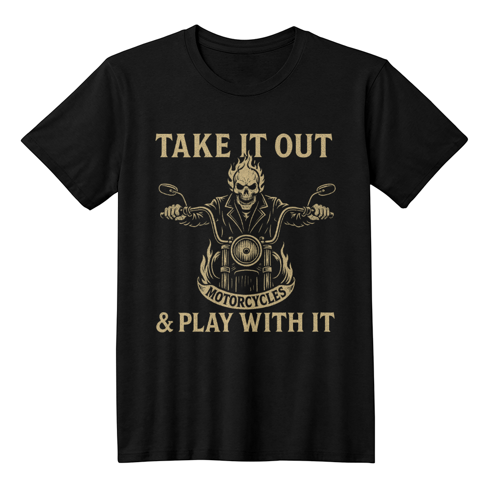 Take It Out & Play With It" – Bold Biker Skull Tee