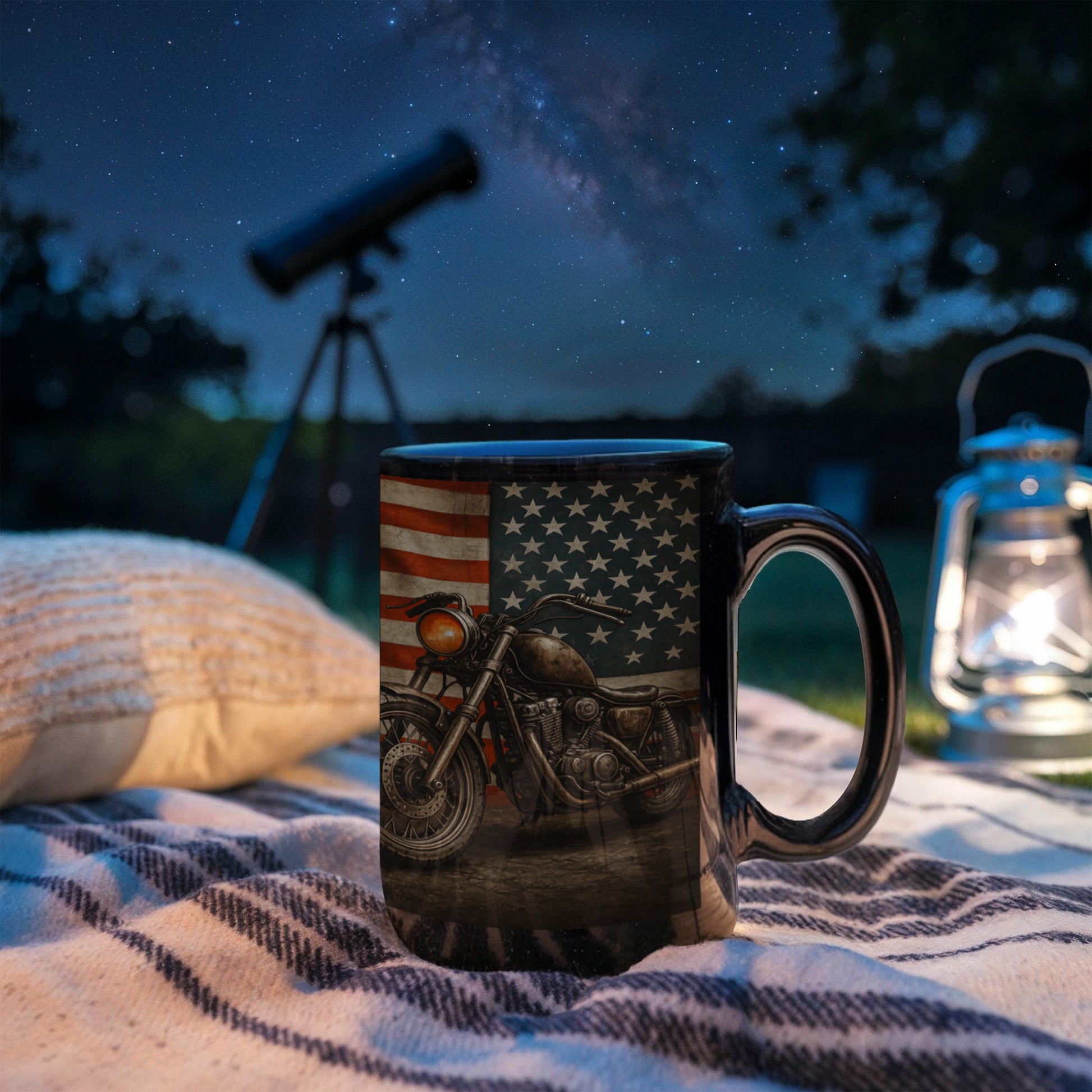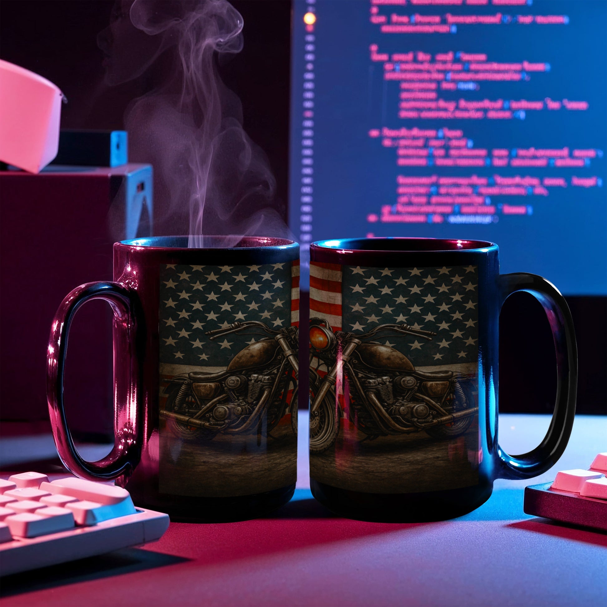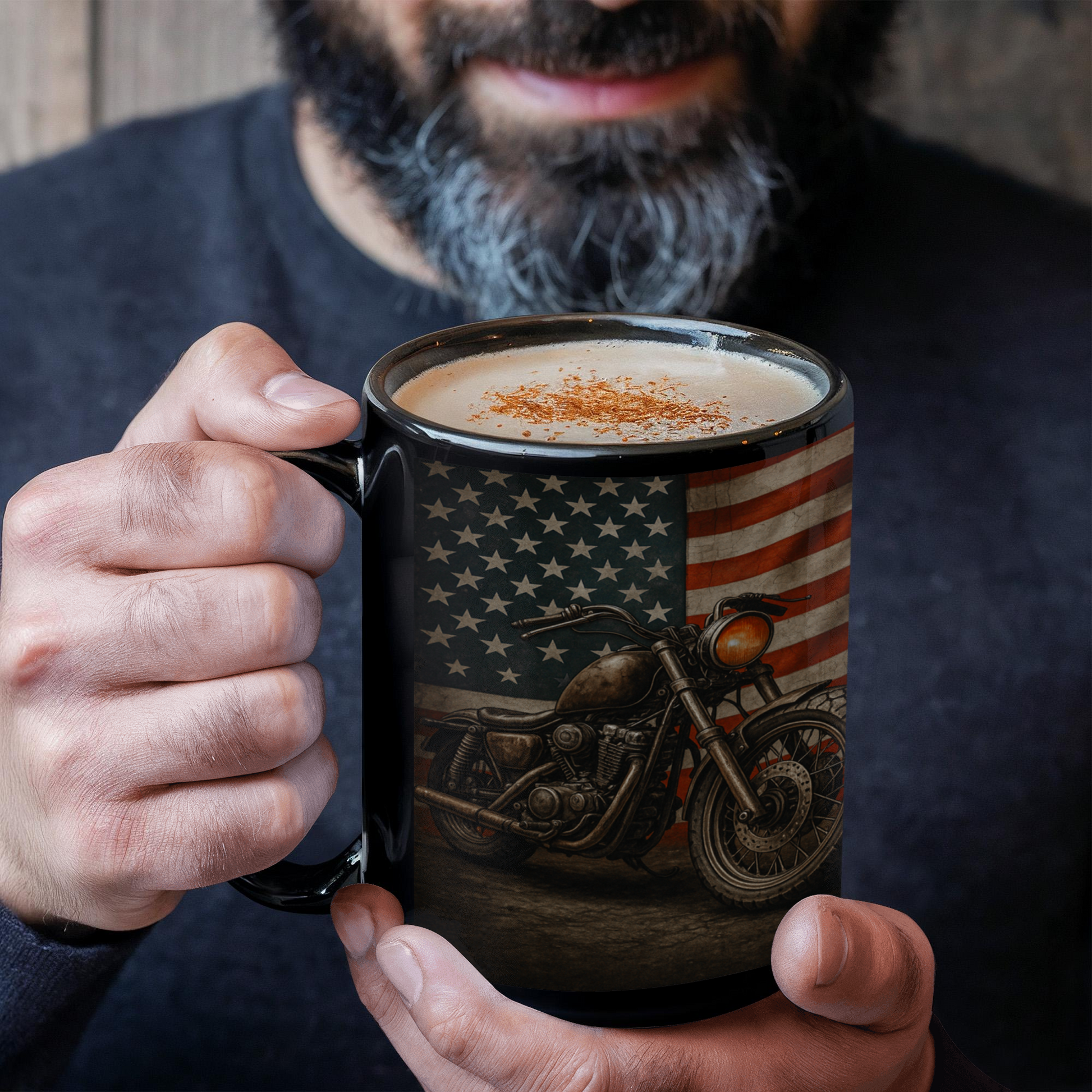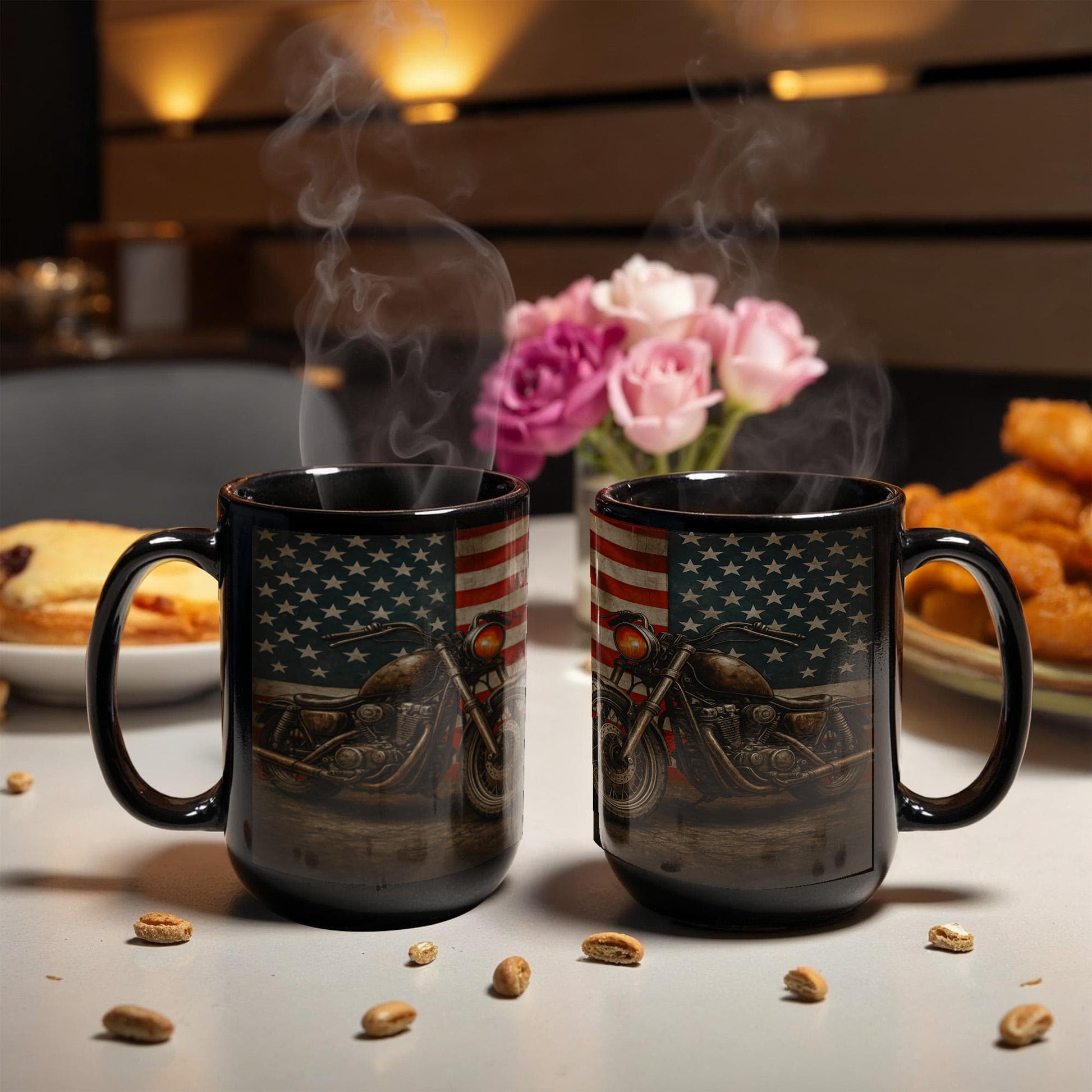 USA Flag Retro Biker" – Premium 15oz Black Ceramic Mug