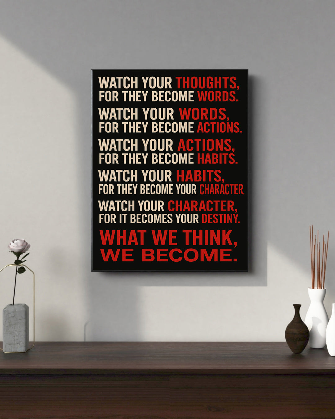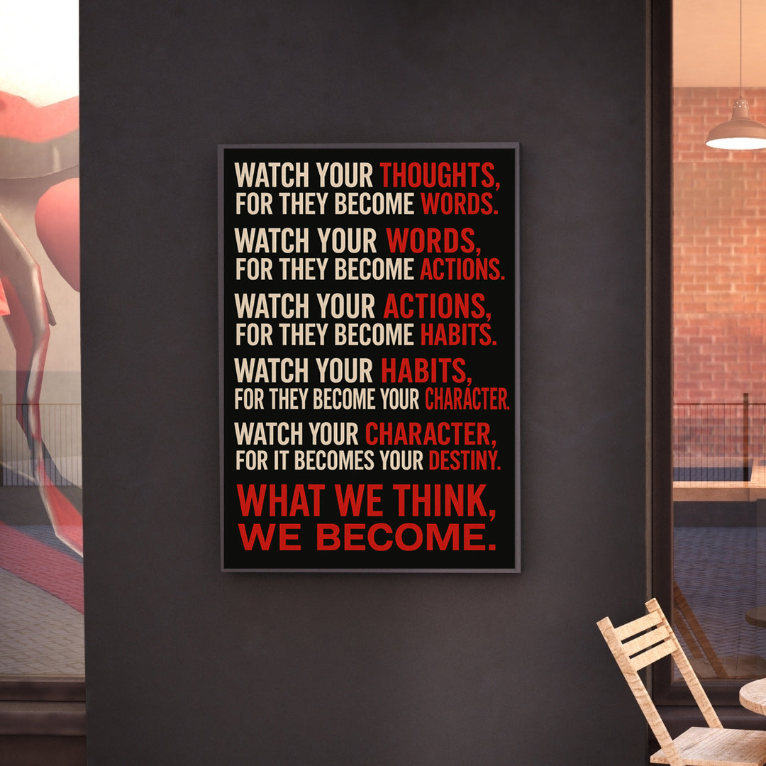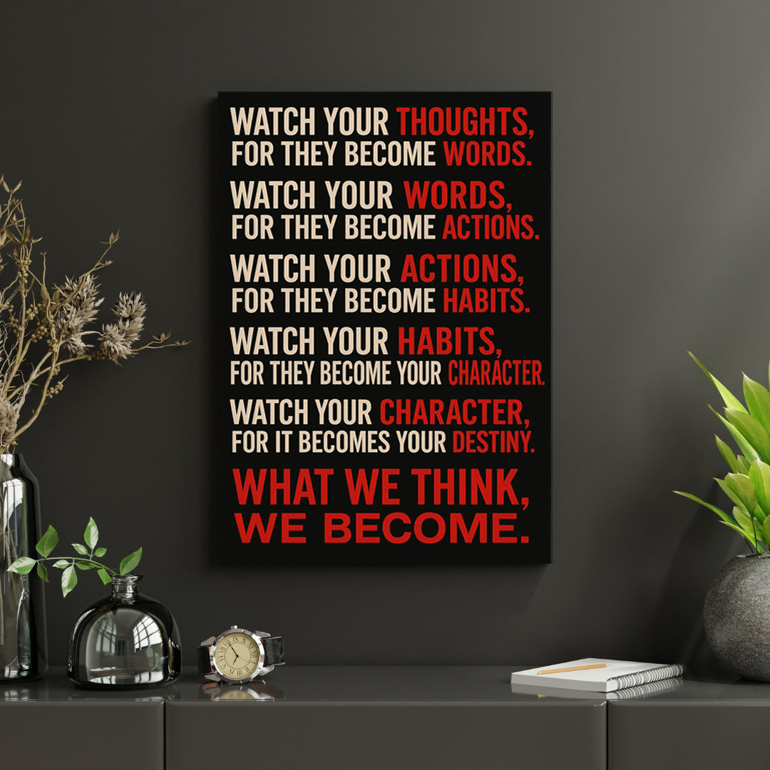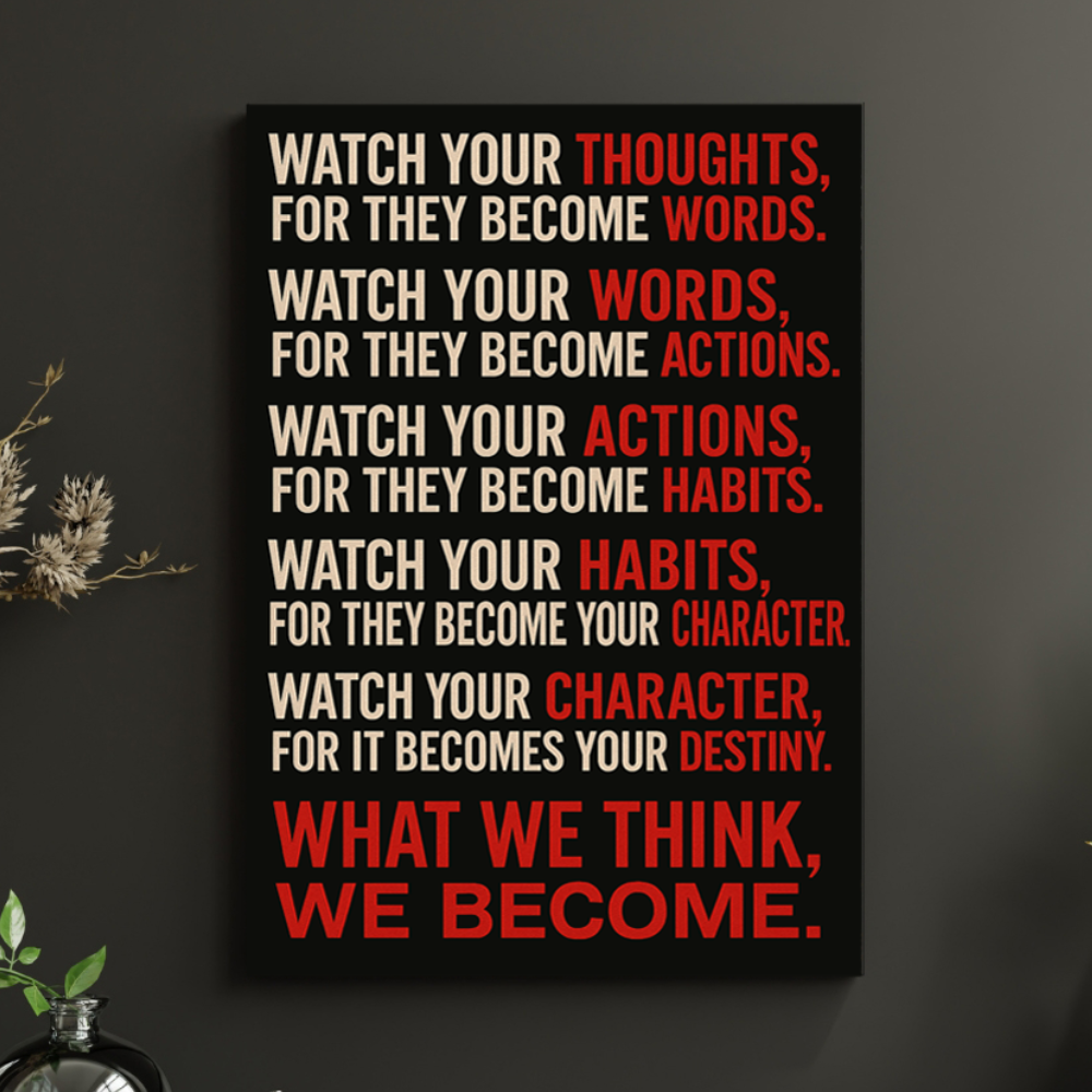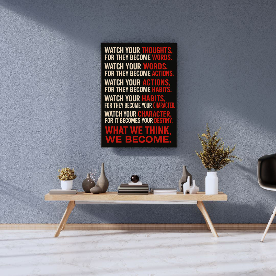 This bold canvas delivers one of the most powerful reminders in life — that what we think, we become. Perfect for those chasing greatness, building discipline, or transforming their mindset day by day.