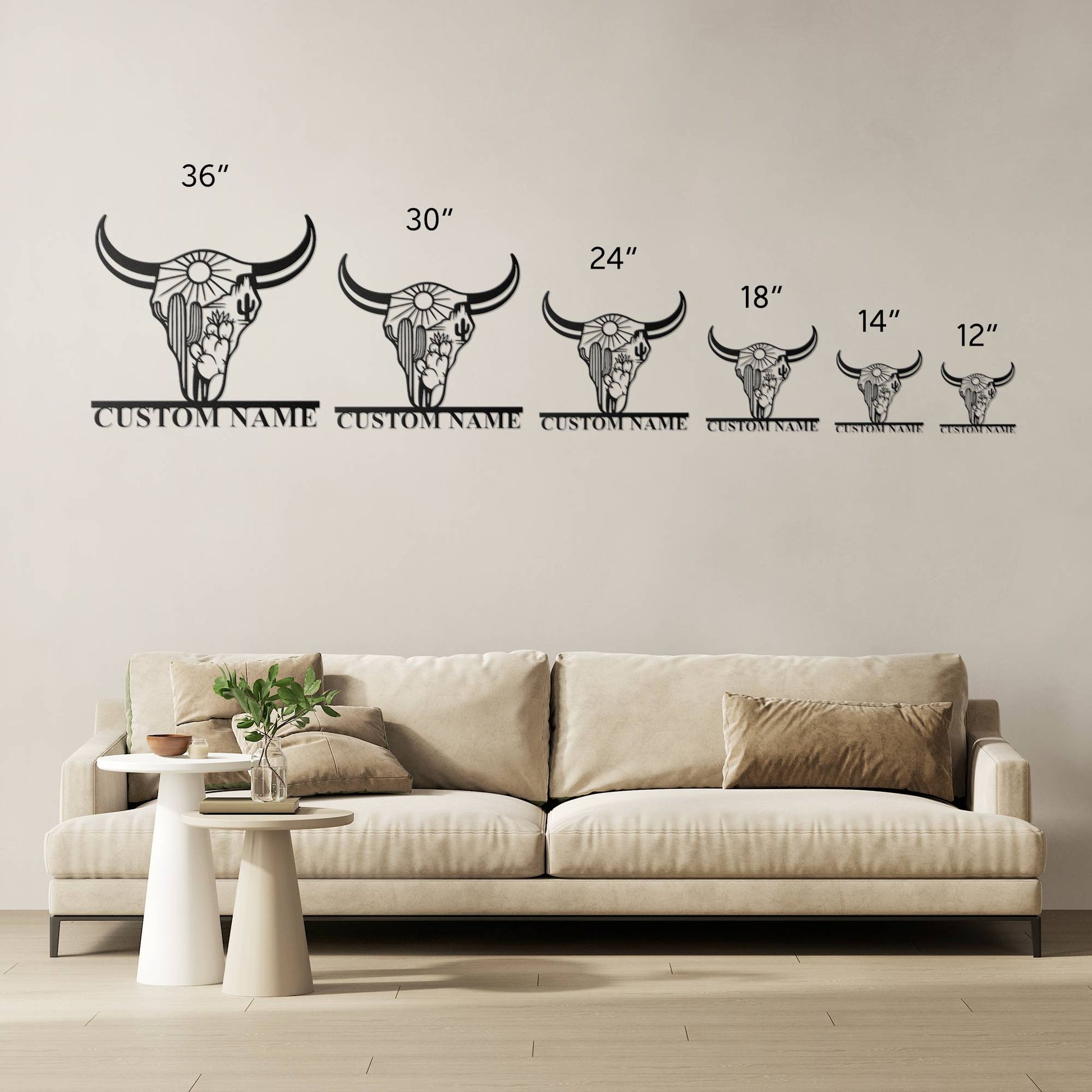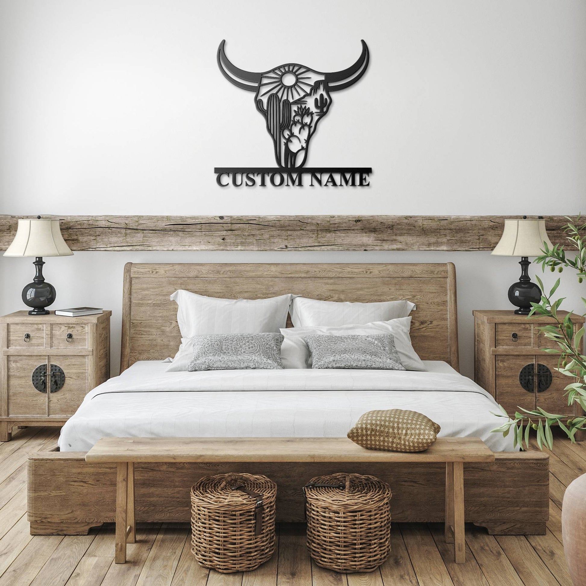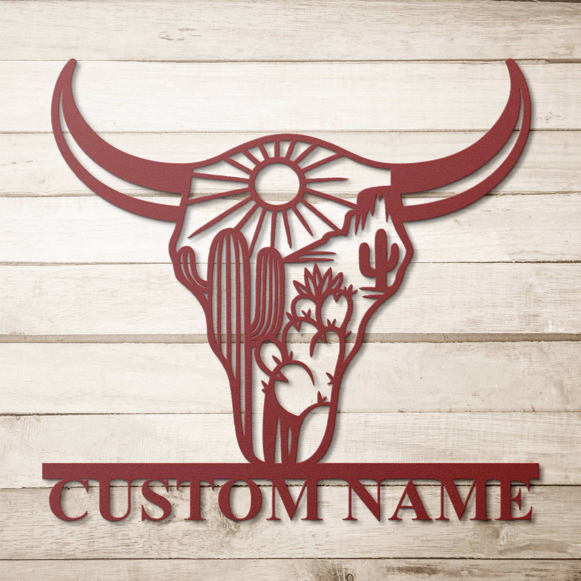 Bring bold Western charm to your space with this personalized Longhorn Skull Metal Sign , the perfect statement piece for cowboy homes, rustic porches, or country-style entryways.