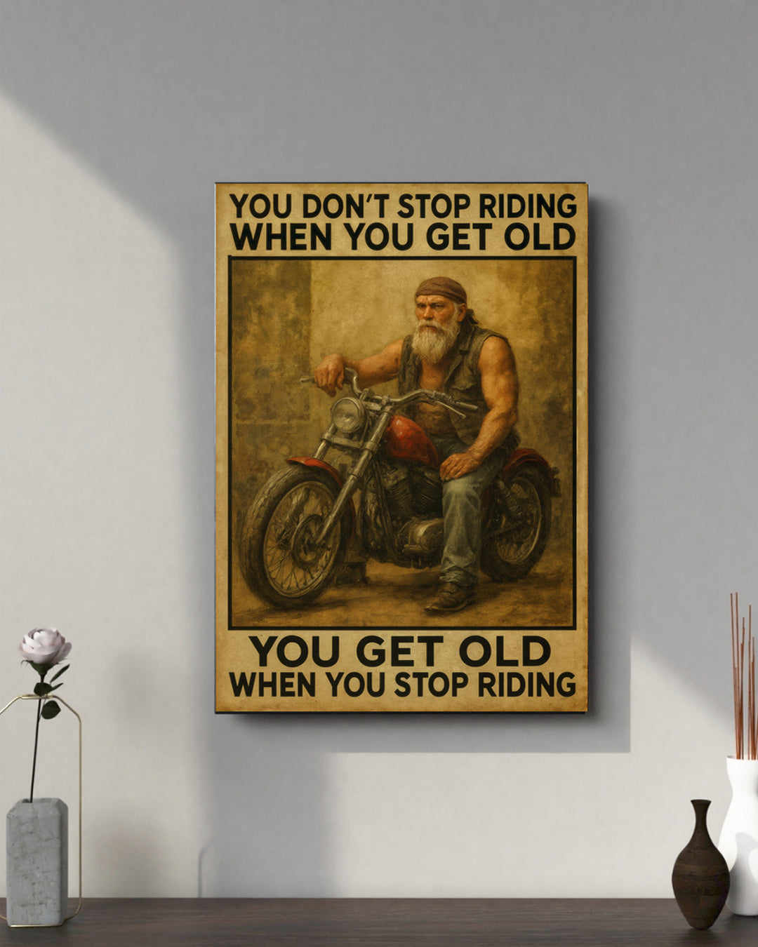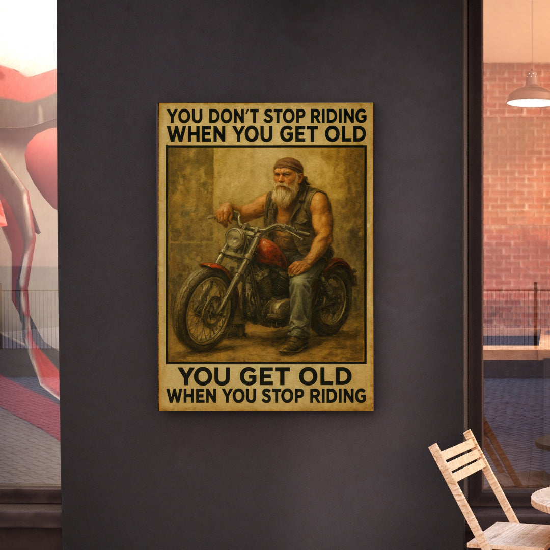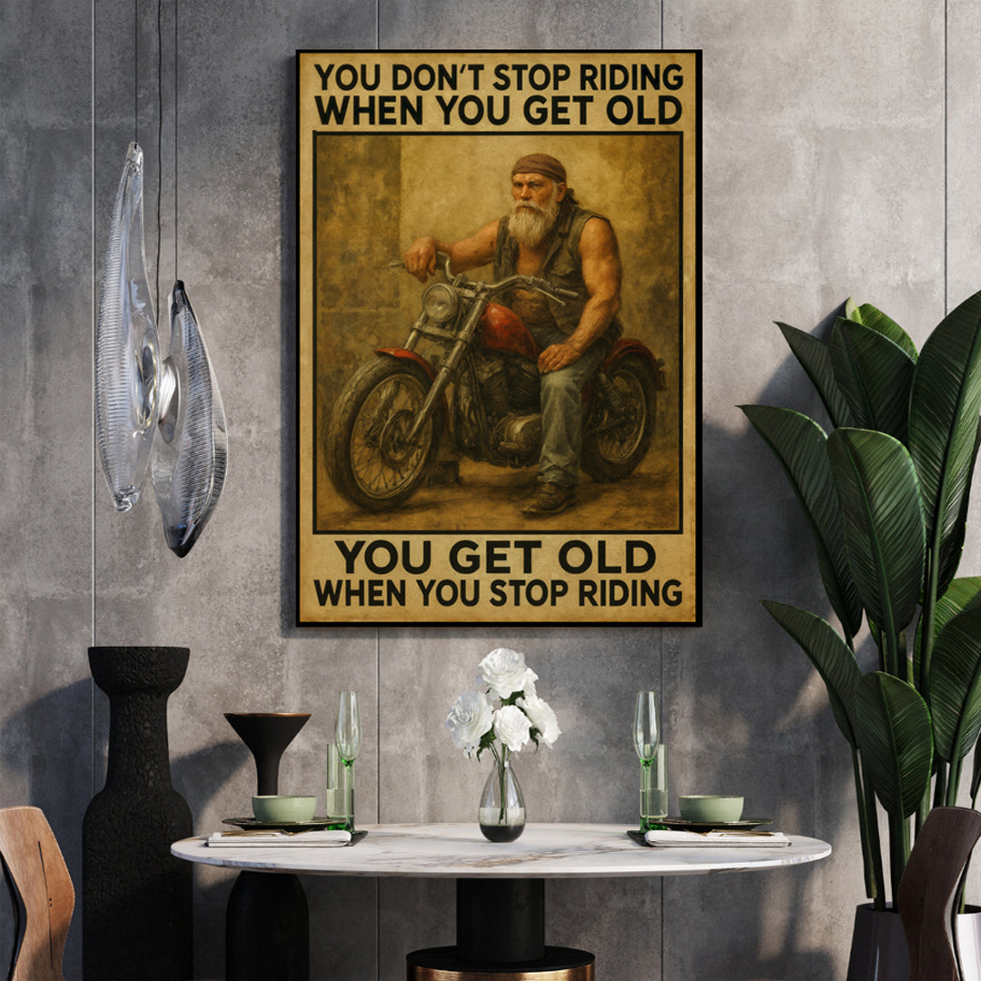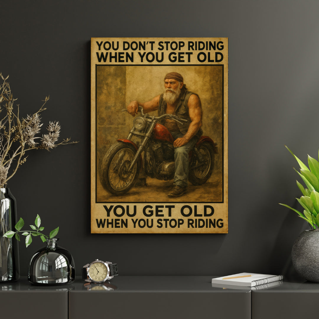 You Don’t Stop Riding – Premium 16x20 Canvas for Bikers